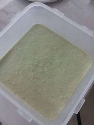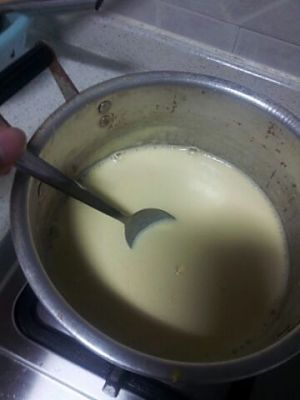 把调好的抹茶粉及蛋黄液混合。倒入70-80度左右的热牛奶中~充分混合搅拌~放入冰箱冷却。
