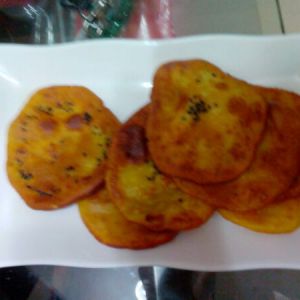 将面团捏成小剂子,压扁,再在面上洒呀几颗黑芝麻,然后上锅煎