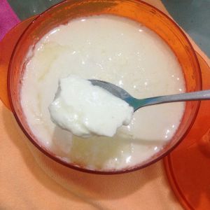 搅呀搅呀,把老酸奶搅拌至融化。+_+