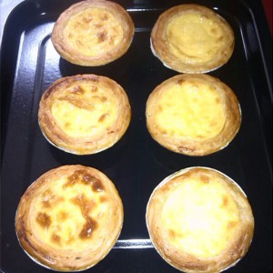 放入预热好的烤箱210度,25分钟,上下火,中层。(蛋挞皮是在调味品店买现成的的)