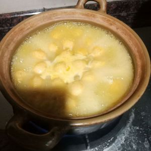 然后小火煮15分,彻底让咖喱块融入到鱼蛋中