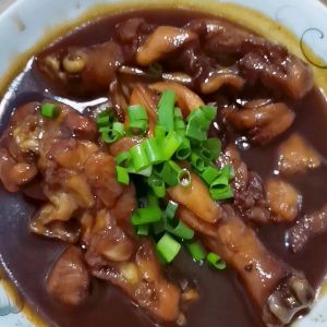 装盘,撒上香葱点缀,可以开吃啦,味道偏甜,适合爱吃甜的亲们