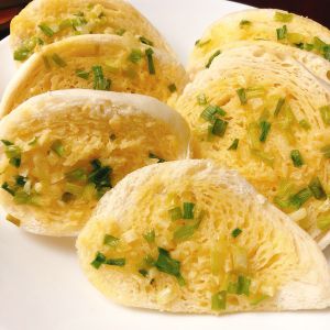 烤箱180度预热10分钟,把烧好的蒜香酱汁涂在面包片上,放入烤箱中层烤15分钟