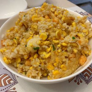 准备一碗饭~一碗鸡蛋~一根小葱~一碗玉米粒~一碗虾子肉