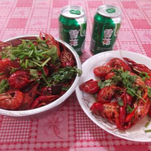 倒入先前盛出来的龙虾,倒入一厅啤酒,大火煮开转小火熬制,收汁之前放入盐,鸡精生抽,菜谱里的调味品都是用的适量,因为每个人的口味不一样,需要自己试味,咸淡个人感觉