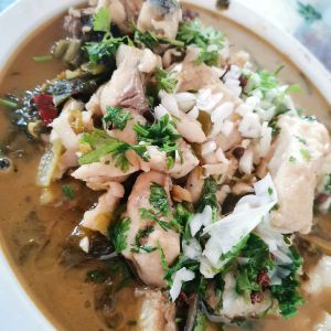 然后加入盐,鸡精,蚝油,醋,酱油调味,放入鱼头,鱼排煮5分钟将鲜味熬出来