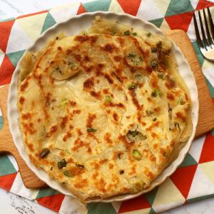 锅里少许油,中小火,下饼两面煎,中途可以盖盖子,煎至金黄(过程中翻4-5次)。