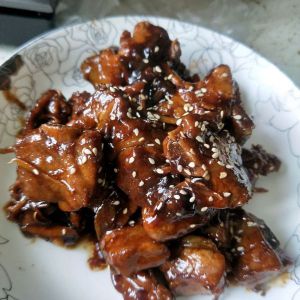 最后加盐大火收汁,想要粘稠一点就加点水淀粉,收汁后,就会显得很好看,加点白芝麻!好吃到嘬手指!