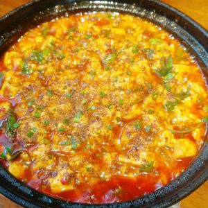 放入3大勺豆瓣酱、一部分辣椒面、豆豉末和蒜末,炒出香味后放入高汤(这里推荐先看看文末的要诀)。然后放入牛肉末和豆腐。