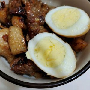 再把炒好的圆葱,一个煮鸡蛋下锅