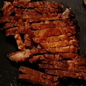 梅花肉洗净,控水,加入适量黑胡椒,蒜片,姜片,叉烧酱!