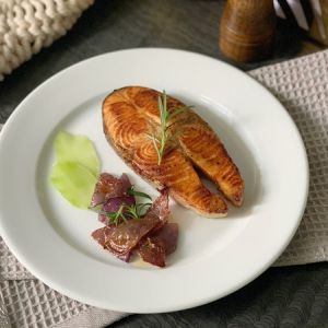 稍煎定型放入预热180 度烤箱烤20分钟左右,注意观察颜色