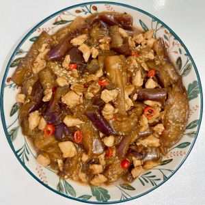 下茄子翻炒均匀,倒入调好的料汁,大火煮开