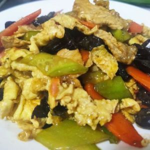 倒入切好的胡萝卜,青瓜,黑木耳,炒至断生