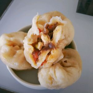 正常地开始包包子,然而我包包子手残就不多说了(๑• . •๑)。水开后看包子大小蒸十到十五分钟吧,毕竟馅已经炒熟呢。