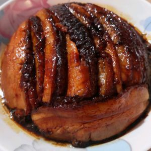 五花肉冷水祛除血沫后中小火煮30分钟后取出用牙签或叉子把猪皮插眼以便入味