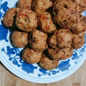 起锅烧油,7成油温放丸子 炸个5,6,7,8分钟 熟不熟我都靠尝