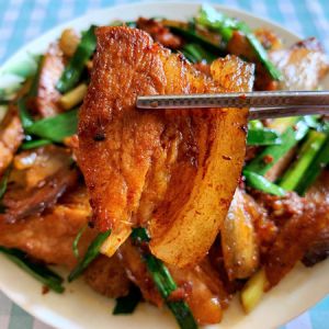 准备材料:将蒜苗切小,五花肉提前煮好。