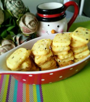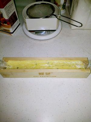 将饼干面团用保鲜膜包好放入饼干整型器中压实