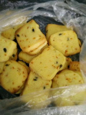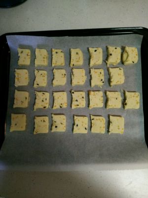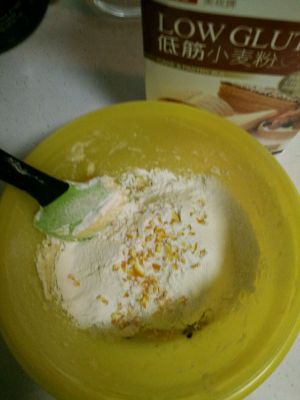 筛入低粉,放入柳橙皮碎,翻拌成均匀面团
