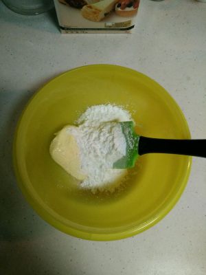 黄油室溫软化,放入糖粉,搅拌均匀,无须打发