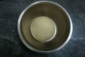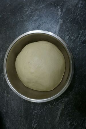 揉好的面团放入盆中盖上保鲜膜或是面包机中进行第一次发酵!发酵时间大约1小时,(由于天气的变化我选择自然发酵)所以一定要多观察面团发酵的状态,不要发酵过度!大约是原面团的1.5倍的样子!
