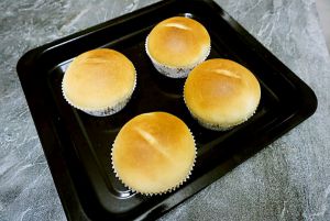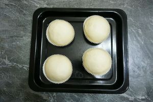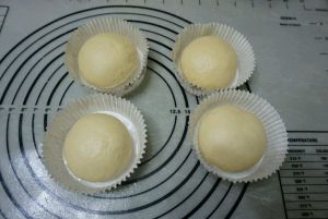 滚圆后放入纸托或是汉堡模具中,即使没有也可以不用,整好形状直接排入烤盘!