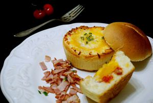 超级美味呢!如果想把里面的鸡蛋烤老一些可以多烤2分钟,注意观察不要烤过火!