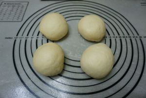 再平均分成4个小面团,将其揉制光滑!盖上保鲜膜醒发15分钟!