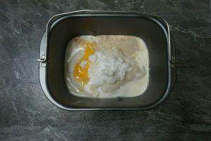 先将黄油以外的面团材料放入面包机中,先揉10分钟后放入黄油,继续揉20分钟!手揉或者是厨师机都可以!(加牛奶的时候注意观察面团的湿度进行调整,不要一次加完)