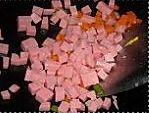 方腿、韭菜、胡萝卜、洋葱、玉米分别切粒;