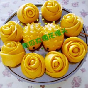 1 南瓜切片,蒸熟,用勺子压成泥,晾凉,加入面粉和酵母(用水或开),如果热的时候加入酵母,会杀死酵母,发不起来面,揉到面团光滑,醒发至1.5倍到2倍。喜欢甜的可以加适量的糖和牛奶。