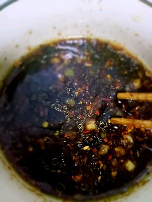 生抽,醋,盐,鸡精,香油,温开水少许调成调味汁,锅里烧热油放入小葱,辣椒面炸香倒入料汁中(如果放蒜的话同小葱,辣椒面一起放入锅里)