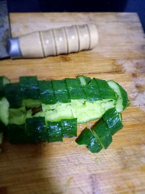 黄瓜洗干净,拍碎,切小块