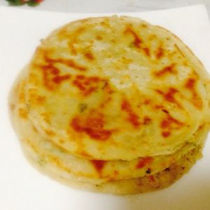 平底锅抹一点油放上小饼煎至两面金黄即可