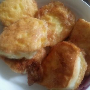 把沾满鸡蛋浆的馒头放进锅里进行煎