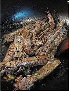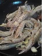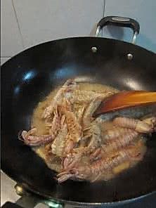 虾变色时放黄酒,撒一小勺椒盐粉,炒匀