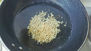 玉米丁用水焯一下(我是从生玉米上自己搓下来的玉米丁,如果用现成的玉米丁罐头就可以省下这一步)