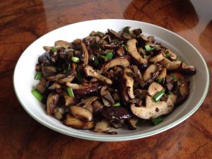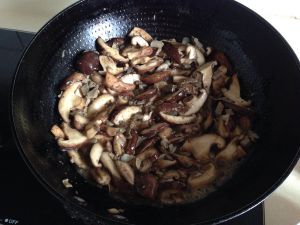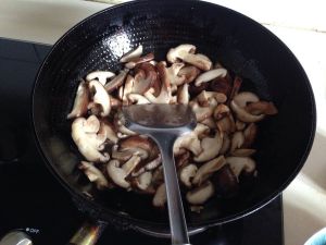 炒的过程中香菇会出水,小火一直煸到香菇收干,加适量盐,花椒面,葱花翻炒均匀