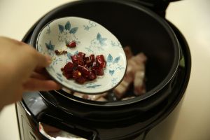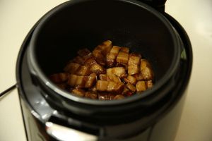 放入小半碗水,水不要过肉面,不要多,水太多了肉味就淡了,那样的话出锅还得再收汁