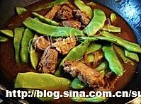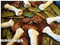 将东北大酱放入适量温水中调匀,倒入锅中,水量没过豆角和排骨即可。盖上锅盖,大火煮开,小火煮二十至三十分钟;