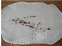 将面团擀成圆片,均匀涂上少许盐和色拉油,可以个人口味加一点五香粉或椒盐;