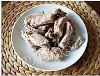 锅中水沸后放入排骨氽烫一会儿,捞出排骨,用温水冲净血沫和污物;