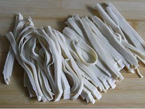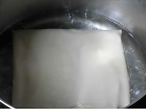 百页放滚水焯好。(为了去除豆腥味加一勺盐)