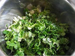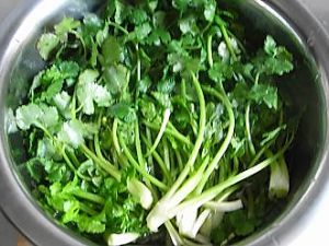稍凉再拌入香菜加盐.鸡精.麻油即口。