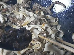 倒入百页开小火一勺豆辦酱搅拌匀。