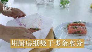 用厨房纸吸干三文鱼表面水分