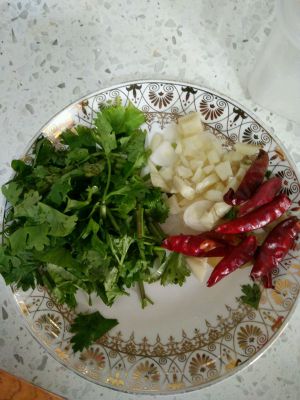 姜蒜干辣椒 香菜备好