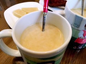 趁热喝,蒙古奶茶与奶豆腐和牛肉干是绝配。