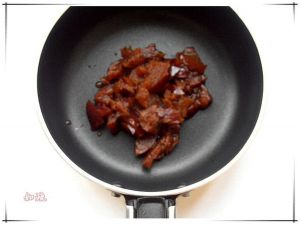 红枣去核剪成小碎块,加上能盖过枣粒的清水,煮软透,至锅底只有一点水份;